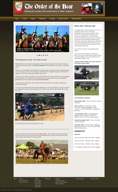 The Order of the Boar website modestly describes its activities as "Historical Cavalry Re-enactment in New Zealand". However, they do a lot more, including organising one of Upper Hutt's most colourful and popular events, the jousting at Harcourt Park, and event that brings large crowds and international competitors to Upper Hutt.
