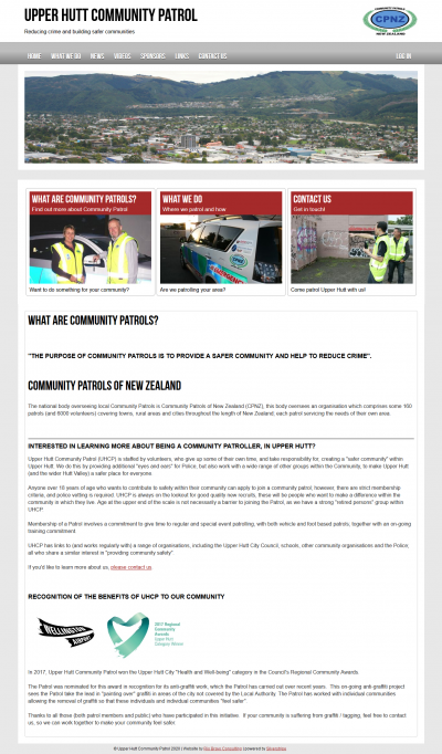 Building a website pro-bono site for Upper Hutt Community Patrol was a lot of fun, involving going for "ride-alongs" with the patrollers to photograph what they did. I also heard great stories about community involvement.