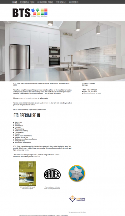 This is a simple, yet effective "brochureware" site for a well known Wellington tiling company. The site is clean, elegant, offers few frills and loads very quickly.
